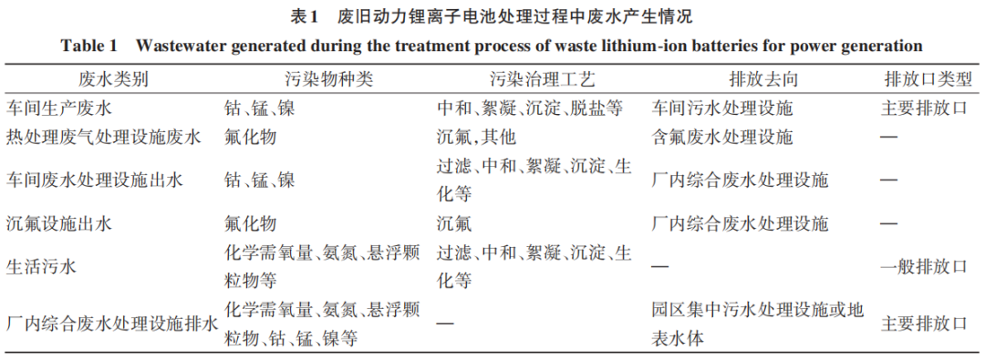 总体而言,废旧动力锂离子电池回收过程产生的典型废水具有高盐分、COD和重金属等特征,同时还含有一定的氮、氟和磷污染物。