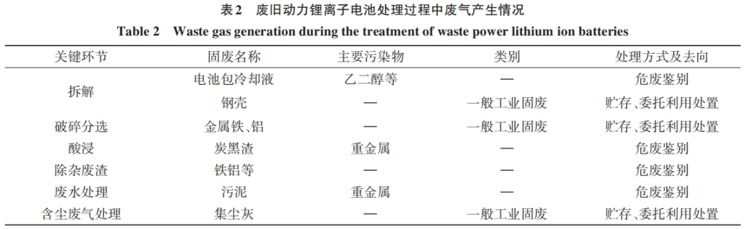 (1)拆解和破碎过程:在电池拆解和破碎过程中,会释放出含有氟磷化物和非甲烷总烃的废气(例如碳酸二甲酯、碳酸丙烯酯和叔戊基苯),以及含有重金属(镍、钴、锰、锂)的颗粒物。