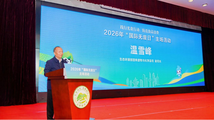3月30日,2026年“国际无废日”山东主场活动在青岛成功举办。本次活动以“践行光盘行动 防范食品浪费”为主题,通过政策引领、经验分享、志愿同行,汇聚起全民共建美丽山东、无废家园的磅礴力量。活动由山东省生态环境厅、山东省机关事务管理局、巴塞尔公约亚太区域中心共同主办。生态环境部固体废物与化学品司副司长温雪峰到会指导;省生态环境厅党组成员、副厅长,厅执法局局长赵辉参加活动。
