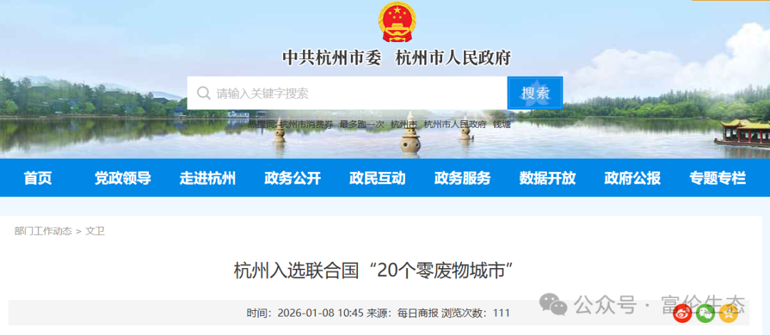 “杭州发布”2026年1月8日推文:杭州,零废物城市!