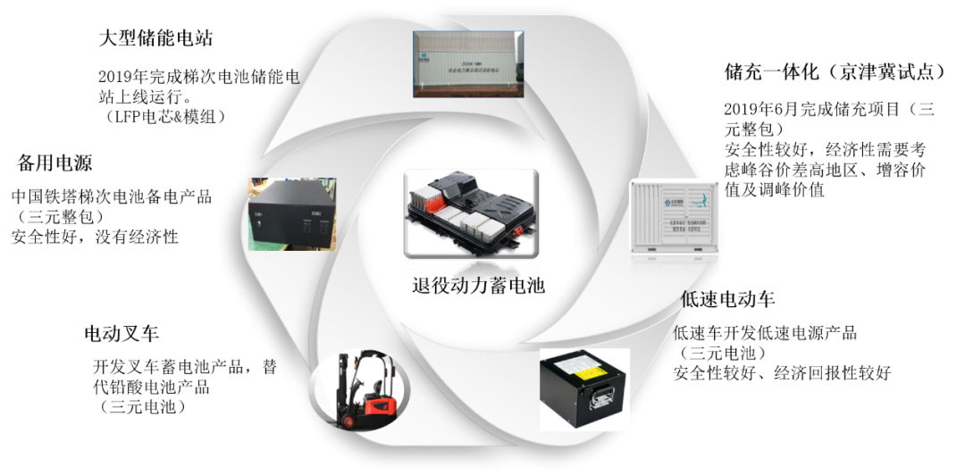 在梯次利用方面已相继开展了梯次利用在储能、预备电源、低速车等应用场景的研究和应用,并且打造了从“梯次电池初步分选→产品研发、打造及核心BMS研究→商业市场模式”一体化的开发和推广,目前与丰田通商等国内外主流车企均已开展了退役动力电池梯次利用的合作项目。并自主搭建使用了低速车锂电云平台、车联网平台等梯次利用配套服务系统,为梯次利用产品的再生利用追溯提供了有效回收的保障。