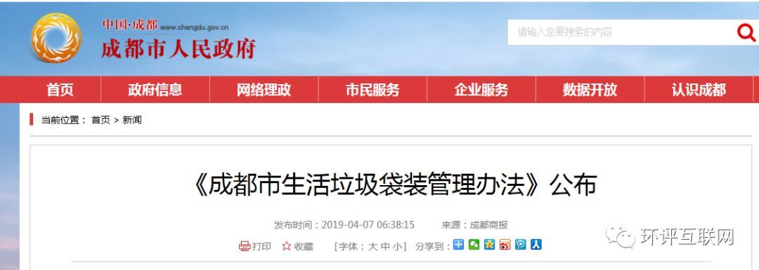 4日,成都市人民政府网站公布了《成都市生活垃圾袋装管理办法》(以下简称“《办法》”),该《办法》自2019年5月1日起施行。与旧版《办法》相比,新《办法》的适用范围更加明确,适用于锦江、青羊、金牛、武侯、成华等五城区(含成都高新区),其他区(市)县人民政府(含成都天府新区管委会)所在地建成区、镇(乡)人民政府所在地建成区、工业集中发展区、农村新型社区以及其他实行城市化管理的区域。
